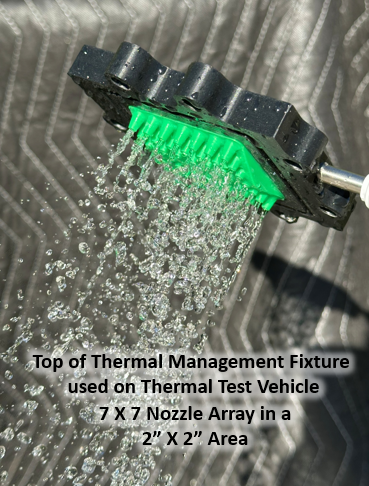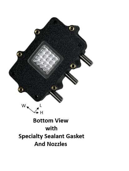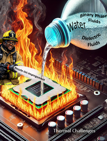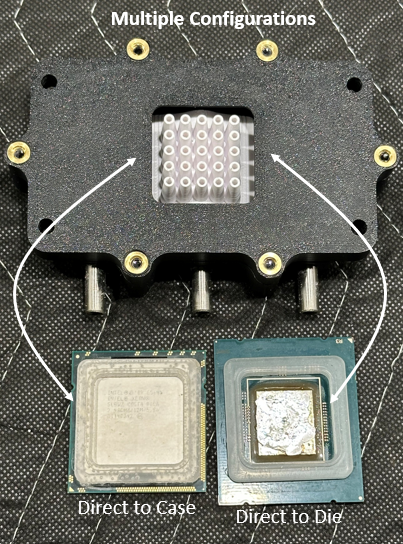 Applicable to next-generation GPUs and accelerators where heat flux and uniformity are critical, currently can handle thermal loads greater than 1500 watts. Nozzle-Impingement-Jets can be sized to cover assymetrical hot spots on GPU surfaces and differential nozzle heights to address 2.5 and 3D chip chip stacking.